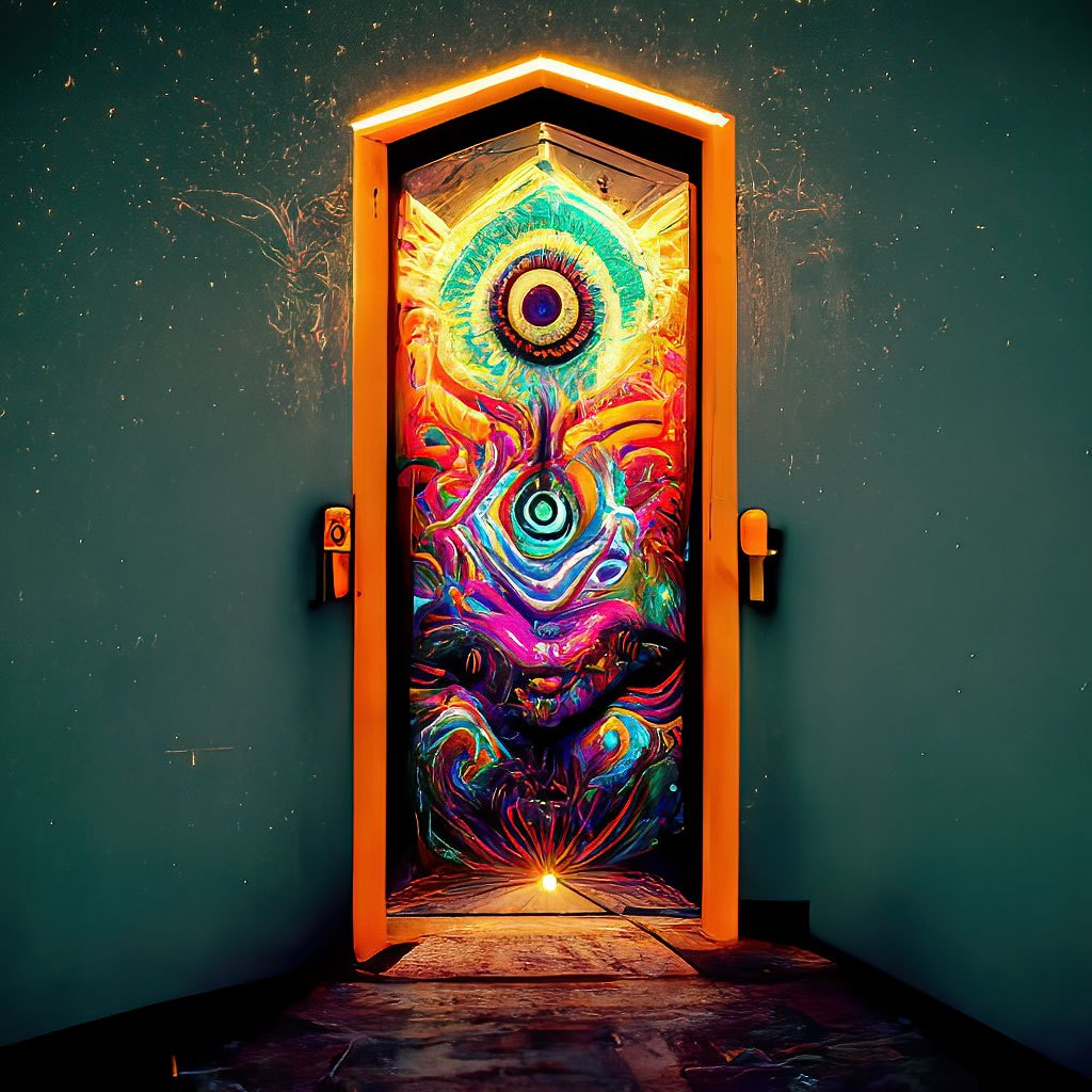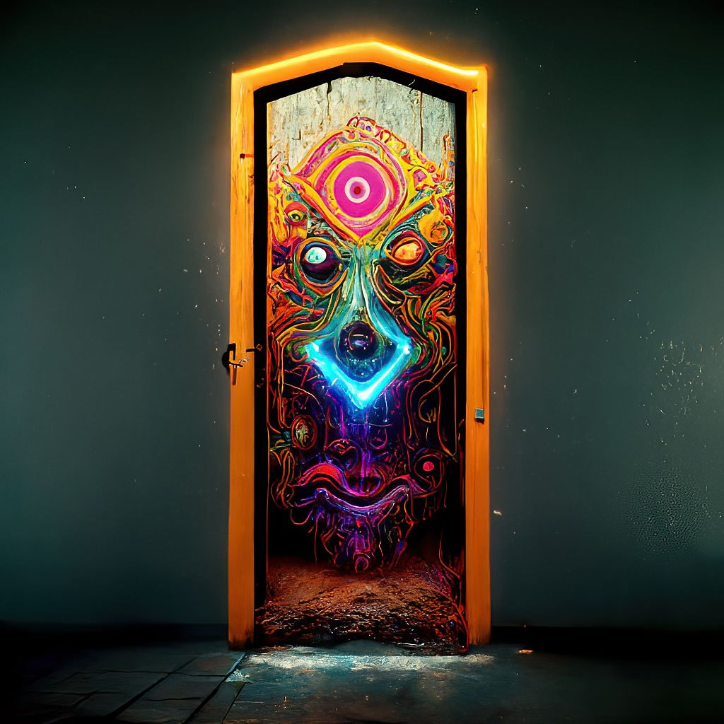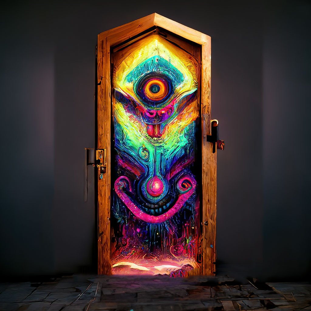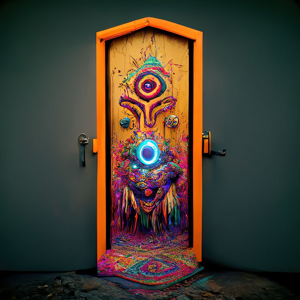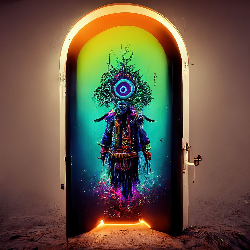 a door with a psychedelic shaman, by Jonathan Solter trending on artstation HD Unreal Engine